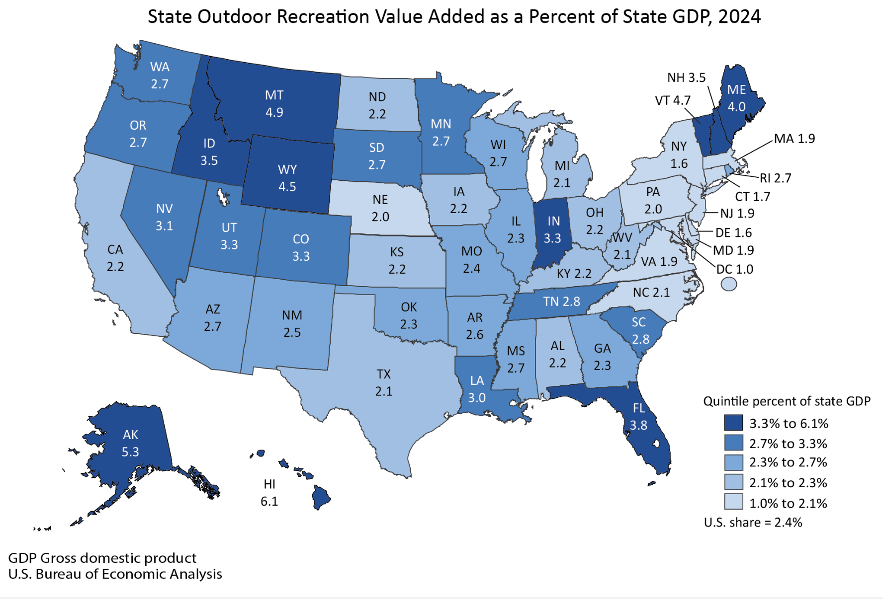 A report released by the U.S. Department of Commerce found that Maine's outdoor industry made up about 3.6 percent of the total economy. The numbers show Maine is one of the top five states in the country when it comes to the value of outdoor recreation in the state's total gross domestic product. Manufacturing and sales of gear and equipment added $348 million to the economy last year, which is a 21 percent boost from 2020.